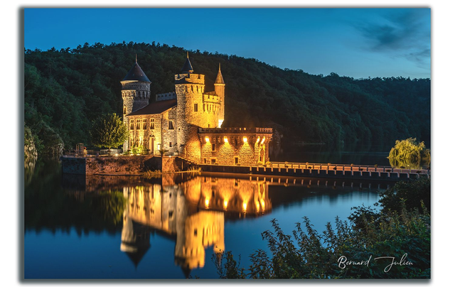 Château de la Loire à l'heure bleue avec son reflet dans un lac.
