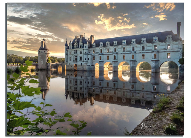 Le château de Chenonceau et son reflet dans la Loire au lever de soleil