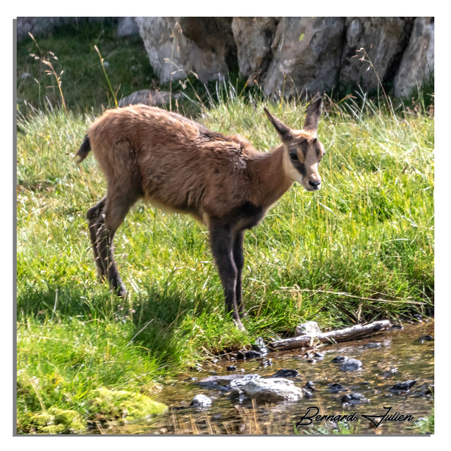 Un jeune chamois près d'un ruisseau dans les Alpes