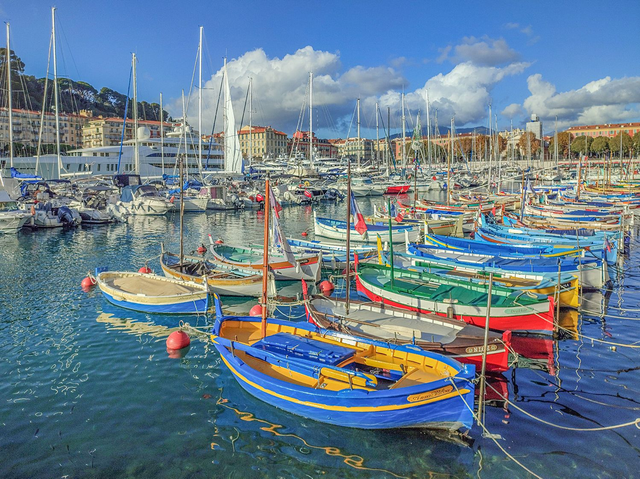 Bateaux de pêche traditionnels multicolores dans le port Lympia à Nice