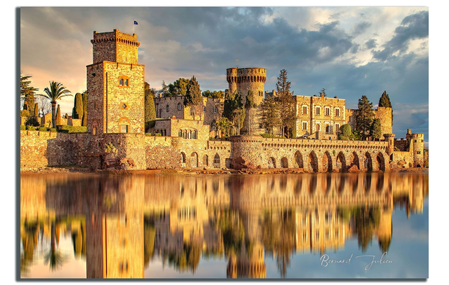 Château de Mandelieu la Napoule et son reflet en mer, dans les lueurs du soleil