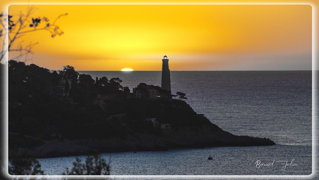 Lever de soleil sur l'horizon près du phare du Cap Ferrat sur la Côte d'Azur