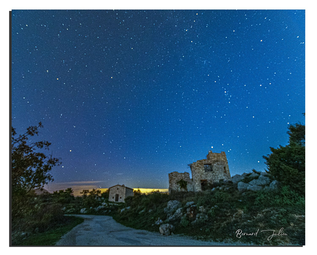 Ciel étoilé au dessus des ruines d'un village abandonné dans le Sud de la France.