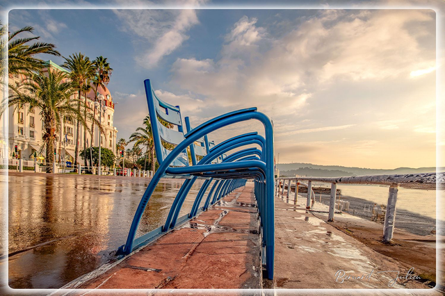 Les chaises bleues de la Promenade des anglais à Nice sur la Côte d'Azur
